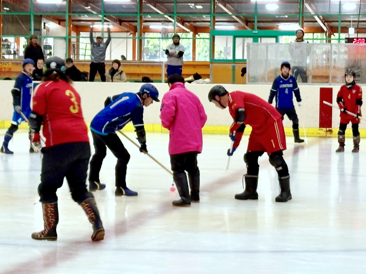 長靴でスケートリンクを楽しむ競技「ながぐつアイスホッケー」