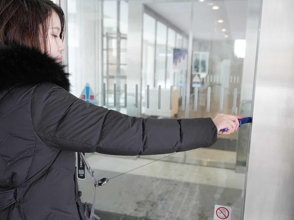 握りやすさを追究したスティック型の自動ドア開閉補助ツール