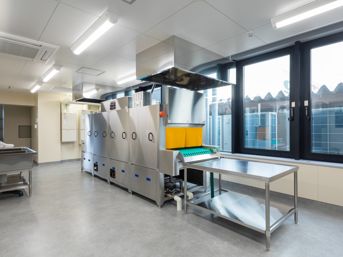 病院・福祉施設向け給食施設「セントラルキッチン」の洗浄室