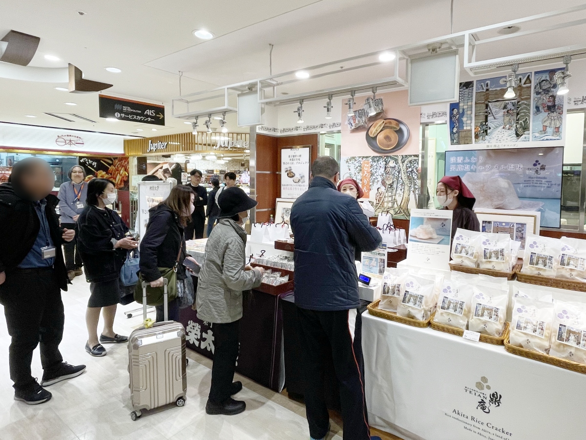 秋田駅ビル「トピコ」内に期間限定で設けられた「得之の工房」プロジェクト特設販売ブース