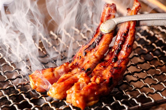 【ファイヤーバード恵比寿】恵比寿駅から徒歩3分、洗練された和モダン空間に佇む『ファイヤーバード恵比寿』。店内で捌いた地鶏と鴨を目の前の囲炉裏で炭火焼きにする、新感覚の焼き鳥が楽しめる「鶏焼肉」は、柔らかさと旨味が官能的に広がる逸品です。