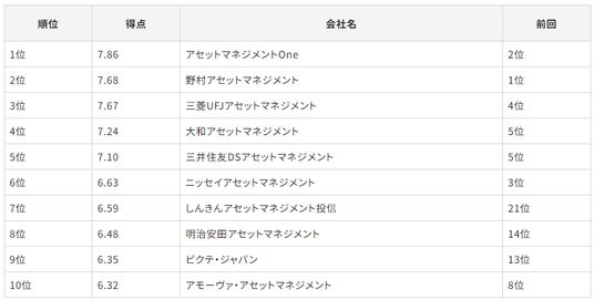 総合第1位は、アセットマネジメントOneが獲得しました。