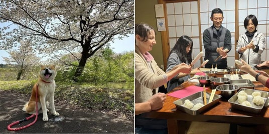 - 秋田犬と一緒にお散歩+「味噌つけきりたんぽ」作り体験