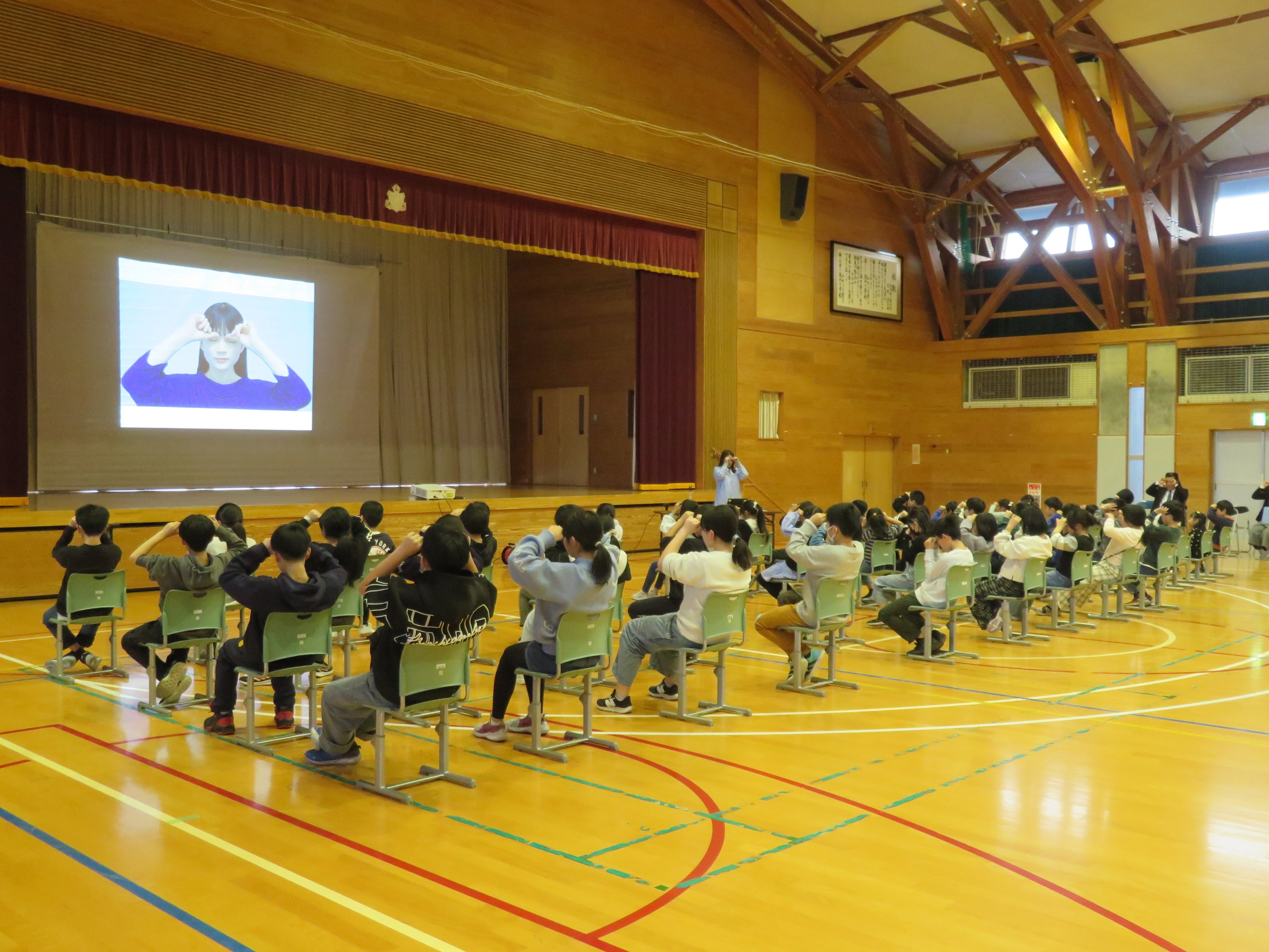 「目によい食べ物、紫外線による害等について分かりやすくお話しいただき、ありがたかったです。クイズ、説明、アイケア体操と内容が工夫され、子どもたちも興味をもって最後まで聞いていました。スマホやタブレットなしの生活は考えられませんが、健康被害等デメリットにも目を向けさせ、実践に生きる教育活動を進めていきたいと思います。本日は、どうもありがとうございました。」(教職員)
