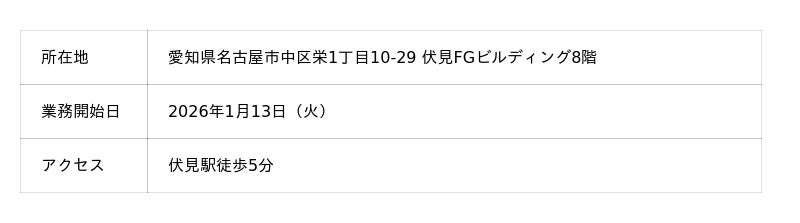 「特定技能」労働者の法定支援・定着支援アプリ「KUROFUNE PASSPORT」(以下、「KUROFUNE PASSPORT」)を開発・運用するKUROFUNE株式会社(本社:愛知県名古屋市、代表取締役:倉片稜、以下 KUROFUNE)は、事業拡大と組織成長に伴う体制強化の一環として、2026年1月13日(火)より本社オフィスを移転いたしました。