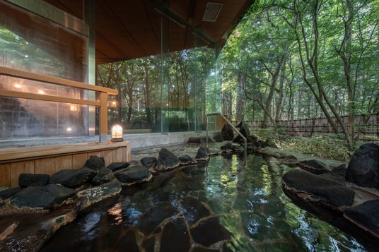 美肌の湯として名高い秋田美人の湯を100%源泉かけ流しで。とろりとした泉質、木々のざわめきや鳥の声に癒されながら、非日常の時間を過ごせます。