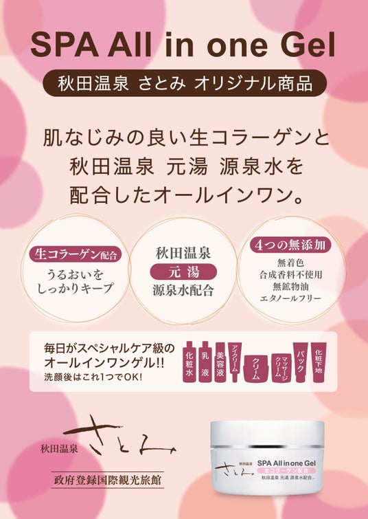 株式会社秋田温泉さとみ(所在地:秋田県秋田市)は、自社オリジナルの本格派オールインワンゲルを新たに発売いたします。商品は以下の通りです。